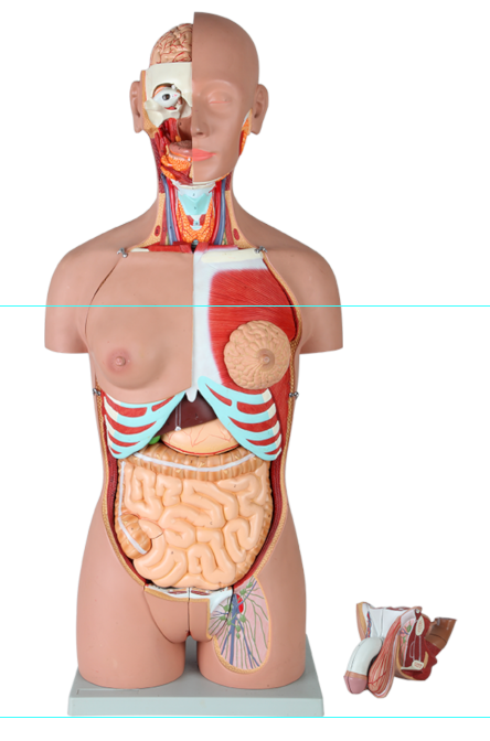 ■ 功能:85CM自然大人體兩性開背豪華型軀幹,共29部件,男女生殖器(qì)可互換,詳細的再現內部器官細節構造和人體各大係統結構(gòu),並且在每(měi)一個器官或結構部位都標示了數(shù)字,結合說明(míng)書有利於精確地認識人體解剖學的器官結構,適於教(jiāo)學(xué)研究的目的,模型部件包括:大小腦(1),眼(yǎn)球(1),左右肺(4),食管(1),氣管(1),肝和(hé)膽囊(náng)(1),胃(2),心髒(2),胰脾十二指(zhǐ)腸(1),腎蓋(1),男性內外生殖器(4),女性內(nèi)外生殖(zhí)器(4),大腸(cháng)小腸帶(dài)盲腸蓋(2),軀殼(1),胸椎(1),胸蓋(帶肋(lèi)骨)帶胸腺(xiàn)(2),安放於塑料座上。