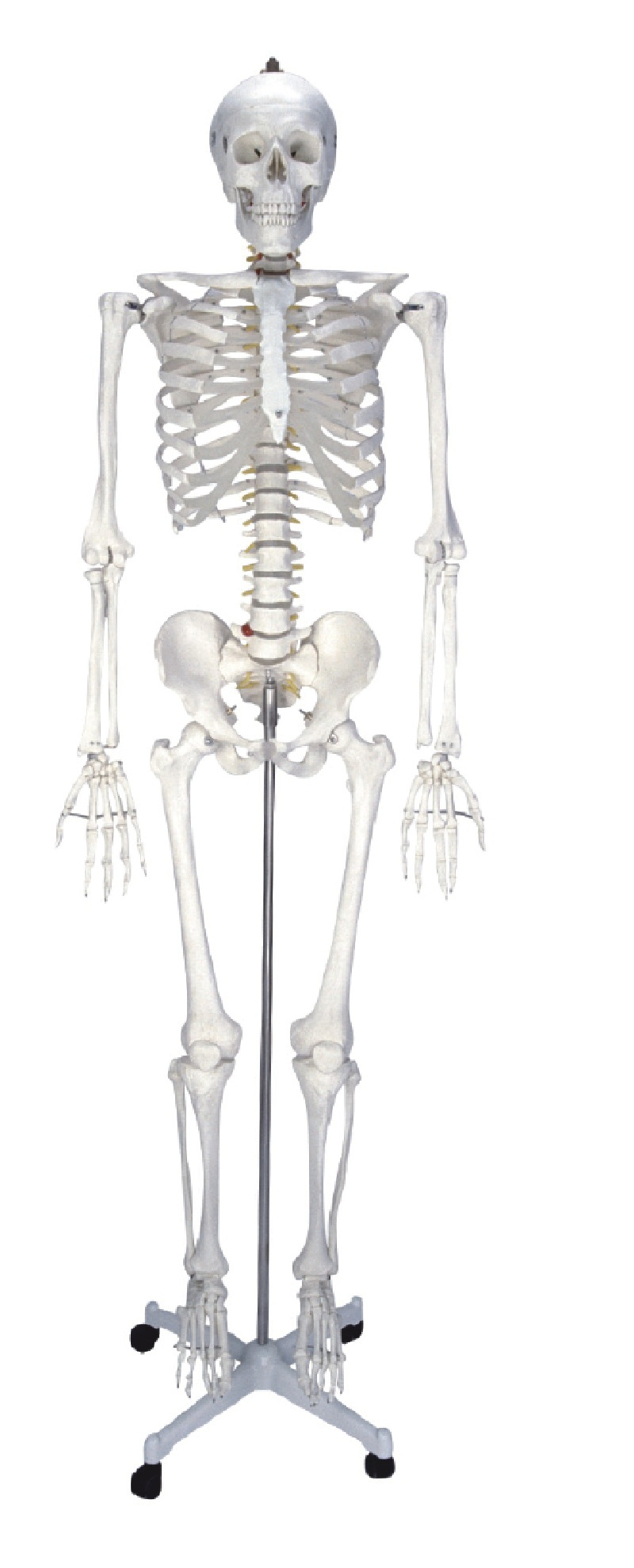 ■ 功能:顯(xiǎn)示男性全身(shēn)骨骼的組成和形態外觀,其(qí)中四肢(zhī)骨可以靈(líng)活組合,頭(tóu)顱骨可靈(líng)活組(zǔ)裝,固定在支(zhī)架上,帶底(dǐ)座(zuò),可靈活移動;
