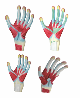 ■ 功能:模型一套(tào)四隻,在腕(wàn)掌側韌帶(dài)上方水平橫切,分別由淺入深層層解剖。主要顯示手背和手(shǒu)掌部(bù)的肌肉、肌腱及(jí)橈、尺側囊。在手掌側,可示外側、中間和內側三群,模型還顯示前(qián)臂肌肉的(de)肌腱達手背、手掌部的止點;