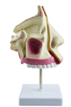 ■ 功能:外鼻:示鼻骨及鼻軟骨的切麵;鼻腔:外側壁(bì)有上、中、下三個鼻甲突入鼻腔,使鼻腔形成(chéng)上、中(zhōng)、下三個(gè)鼻道;鼻副竇:示額竇、蝶竇和上頜竇;