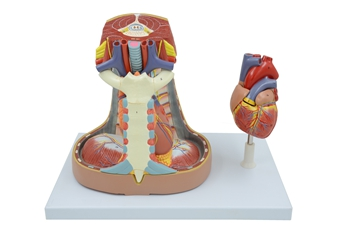 ■ 功能(néng):6部件正常(cháng)人體縱隔模型,包(bāo)括一個2部件心髒以(yǐ)顯示(shì)心(xīn)室和(hé)瓣膜結構。其中胸骨和胸腺可拆下,以觀察肺部血管係統,通過胸廓(kuò)口可以看到器官和食管進入縱隔的形(xíng)態