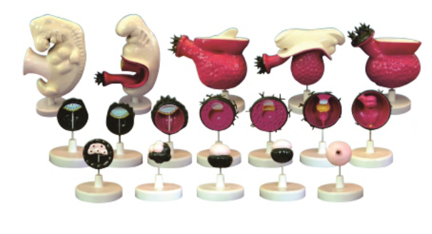 功(gōng)能(néng):這套胚胎模型共計17個,顯(xiǎn)示(shì)各胚層、各係統、各器(qì)官的各階段發生,包括(kuò)有受精卵起一直發生發展到5周末6周初,也就是包括胚前(qián)期(qī)及胚期的全部內(nèi)容。具(jù)體內容(róng)包括胚胎學總論內容;即(jí)由細胞團、胚盤、胚體外形(xíng)發生及演變,中軸器官的發生、三胚(pēi)層的產生及分化、胚膜的發生,胚胎學各(gè)論內容;即各係統以及各器官原基的形態產生(shēng)以及以(yǐ)後的形態演發過程。