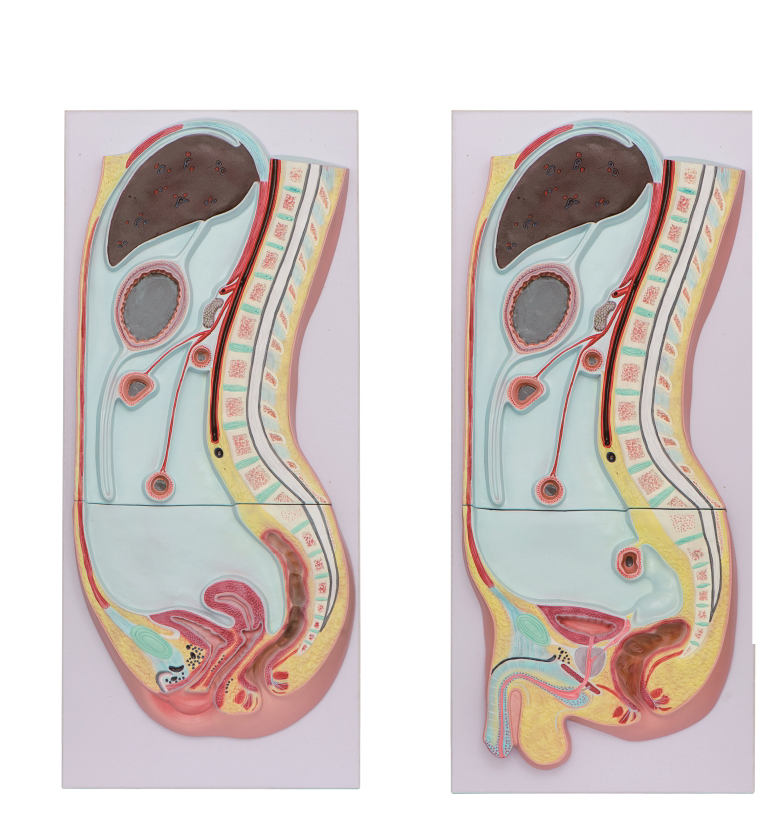 功(gōng)能:產品由腹(fù)部作矢(shǐ)狀切麵及(jí)男、女(nǚ)盆腔矢狀切麵組成(chéng),男女盆腔可互換。腹膜矢狀切麵主要示肝、胃(wèi)、胰、結腸及腹背側的矢狀麵和腹膜腔、大網膜、網膜(mó)囊、肝胃韌帶、橫結腸(cháng)係膜等。男性盆腔矢 狀切麵主要示直腸膀胱陷凹、以及男性盆腔正中矢狀斷麵上的結構。女性盆腔矢狀麵,主要示膀(bǎng)胱(guāng)子(zǐ)宮陷凹、直腸子宮陷凹以及(jí)女性盆腔正中矢狀(zhuàng)切麵上的(de)結構;