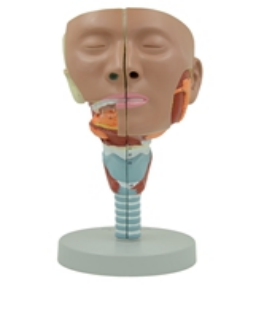 ■ 功能:模型上帶顱底的顱前窩和(hé)顱中窩,前(qián)為麵部,頦下部和頸前部的喉和氣管, 後為(wéi)咽後壁和食管(guǎn)上段(duàn),從模(mó)型後方,可見全部咽縮肌和它們的附著,咽上縮肌起於頰咽(yān)縫,咽中縮肌起於(yú)舌骨大角,咽下縮肌起於甲狀軟骨斜線(xiàn),它們(men)都止於咽縫,三者自下而(ér)上呈迭瓦狀排列,從兩側可見深入咽壁的(de)莖突咽肌以及莖突(tū)舌肌,莖突舌骨肌的關係,還可看到咽與(yǔ)喉(hóu)、食管與氣管的相互位置關係等。三大唾液腺:充分暴露了它(tā)們的位置和導管的走向,腮腺位於下頜後窩和咬(yǎo)肌後緣表麵,腮腺管在顴弓下方越過咬肌(jī)至其前緣深入頰部,下頜下腺管由深部發出,進入舌下腺深麵;舌(shé)下腺(xiàn)位於(yú)頜(hé)舌骨肌上方,舌下腺小管(guǎn)開口於(yú)舌底粘膜;