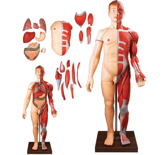 ■ 功能:該(gāi)模型置於基(jī)板上,由男性頭頸部、軀幹和四肢組成,對比展示人體皮膚、肌肉、胸腔、腹腔、盆腔等結構,共有(yǒu)240個部位顯(xiǎn)示。