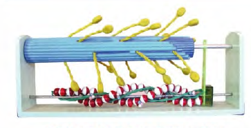 ■ 功(gōng)能:顯示骨骼肌粗(cū)絲和細絲的分(fèn)子結構,粗絲和細絲的相互關係,收縮時(shí)細絲向粗絲之間滑行;