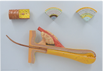 ■ 功能:展示了毛發,毛囊的形態,以及毛根縱切麵,毛幹切麵,毛根十字切麵和毛球十字切(qiē)麵;