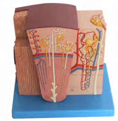■ 功能:模型作微觀解剖,顯示腎髒縱切麵、腎髒的(de)皮質與髓(suǐ)質、腎葉的楔形結構、帶有短髓袢的腎單位以及血液供應;