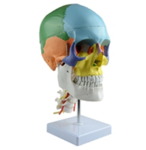 ■ 功能:自然大彩色頭(tóu)骨帶七節頸椎,顱骨和頸椎(zhuī)穿製(zhì)好固定在底板上,用於說明顱骨的不同區間以及顱骨和頸椎的組成和形態結構;