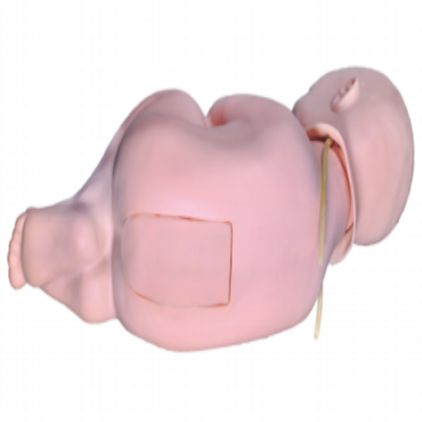 ■ 仿照嬰兒真人大(dà)小,側臥於硬板床上,頭向胸前彎曲,雙膝向腹部彎曲,雙(shuāng)手抱膝,腰背尺量向後弓(gōng)起,也可模擬坐(zuò)位;嬰(yīng)兒完整頭頸部,並有完整的嬰兒左右側兩麵,額部(bù)分布主要(yào)血管係統