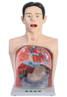 ■ 模型為成年男性上半身,可實現(xiàn)洗胃時的(de)多種體位:仰臥位、左側臥位、坐位