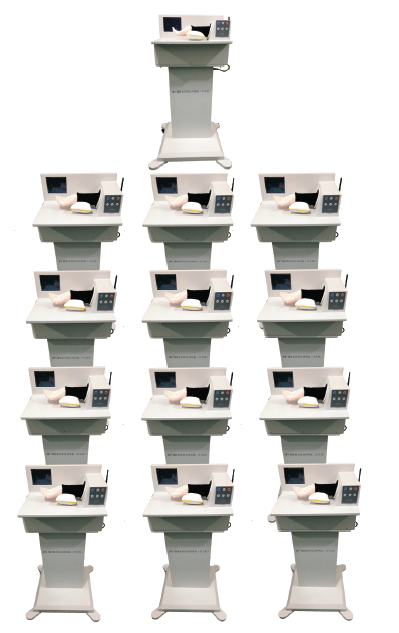 網絡版脈象(xiàng)訓(xùn)練儀(yí)是中醫藥大學、針對目前各中醫院高校教學現(xiàn)狀合作研製(zhì)開發(fā)的。本套係(xì)統不但(dàn)能夠模擬臨床中各種脈象,使(shǐ)學生提高對脈象實際認知能力,還可以為廣(guǎng)大教師和學生提供一個中醫(yī)脈象學習(xí)、實踐(jiàn)和教學測試的(de)平台。該係統的功能還(hái)可以根據客戶需要進行擴展。網絡版脈(mò)象訓練儀(yí)分為兩(liǎng)個部分,主控機遙控平台和單機接受脈象訓練儀。脈象訓練儀外觀大方,底部滑輪方便(biàn)儀器的(de)移動。仿真(zhēn)手的選材(cái)質感柔和,使脈(mò)象訓練更貼(tiē)近於臨床。全按(àn)鍵選擇的設置和友好的操作界麵適合教(jiāo)學及訓(xùn)練。脈象訓(xùn)練儀不僅可(kě)以受控於主遙控發射平台,也可以獨立工作。主控機通過無線發射控製係(xì)統可以在200米範圍內。